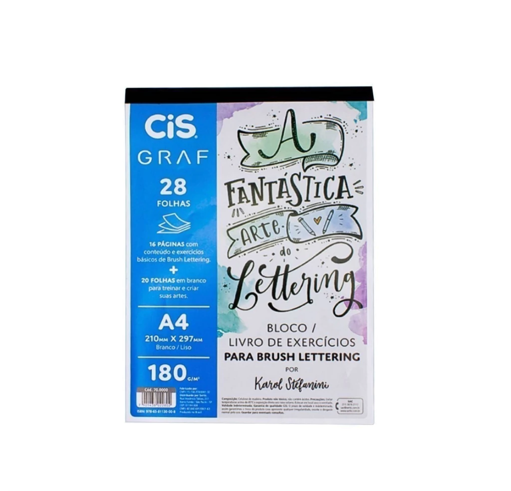 Um bloco de exercícios para você aprender o básico de lettering. O bloco é composto de 28 páginas com gramatura de 180 grs, com 16 páginas de exercícios básicos e 20 folhas em branco para treinar e criar suas artes.