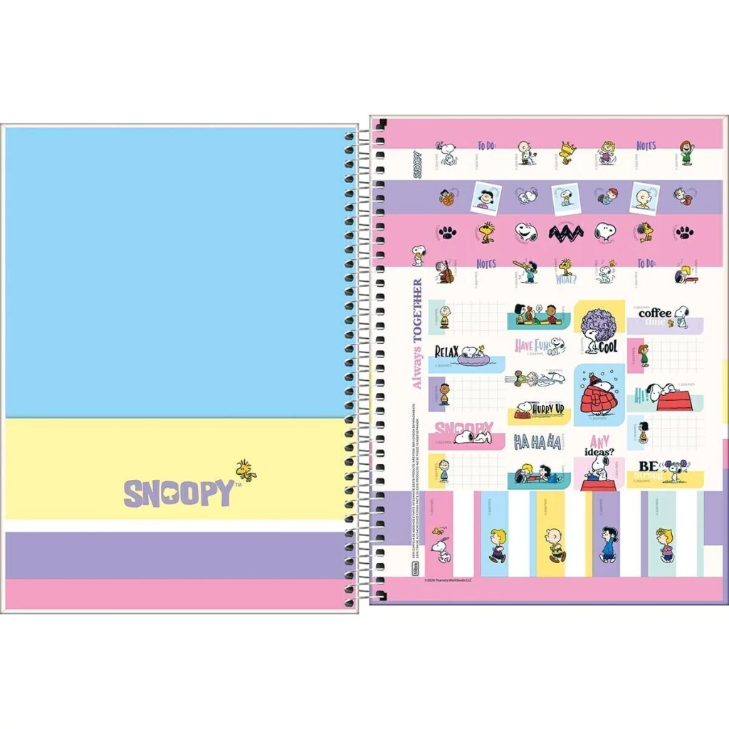 O Caderno Espiral Capa Dura Universitário 1 Matéria Snoopy 80 Folhas possui capa dura com a parte interna decorada, bolsa de papel decorada para guardar trabalhos e anotações e folha com adesivos funcionais. Ideal para o dia a dia na escola ou na faculdade.