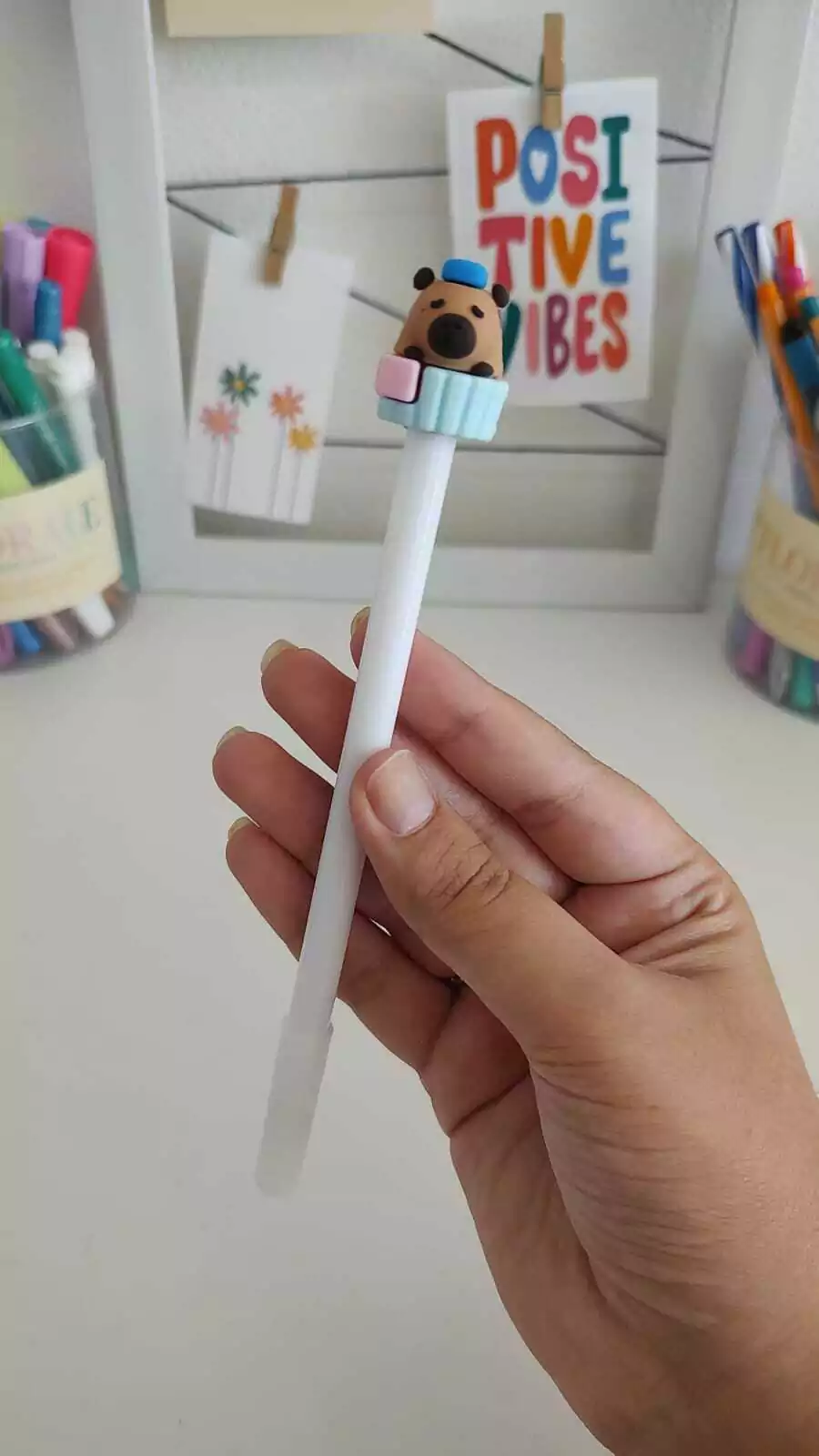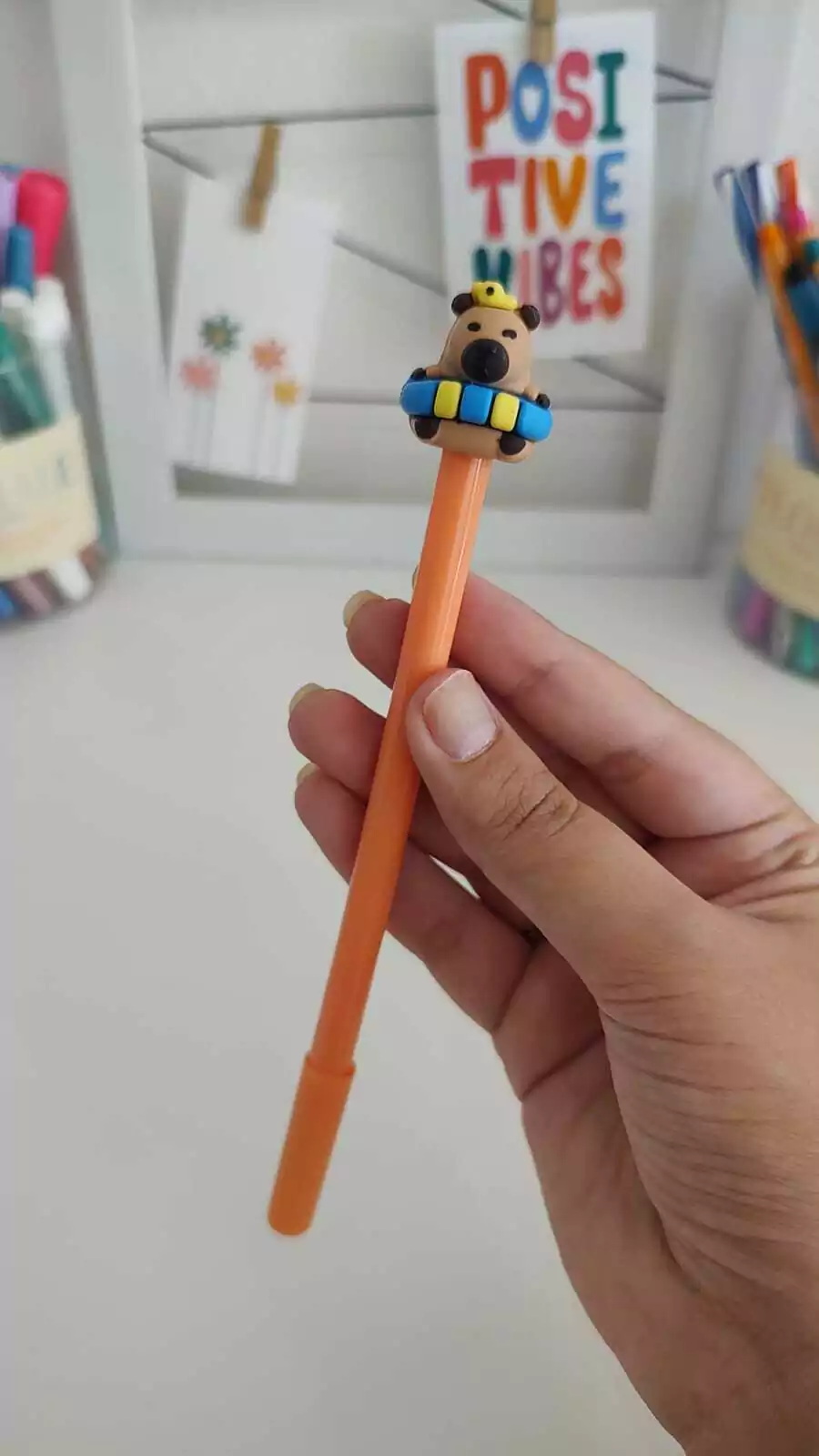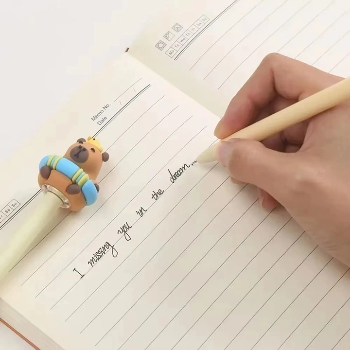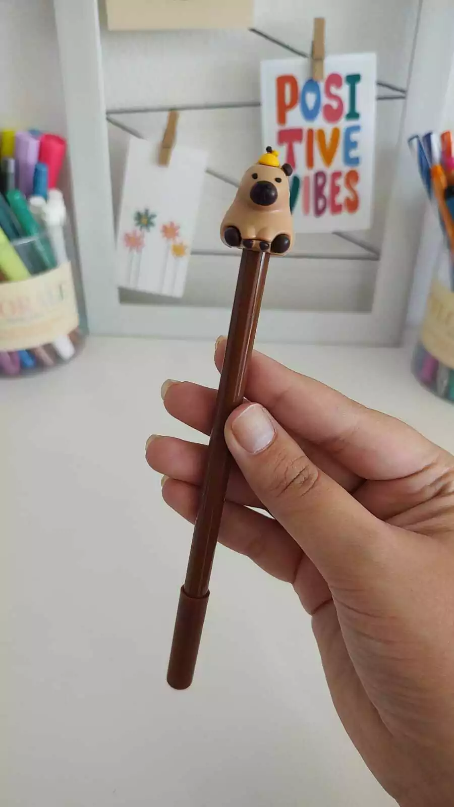 Caneta Fofa no Modelo Capivara  em seu momento super relax . São 3 Modelos de Topo super fofos, com a ponta 0.5mm e escrita Preta