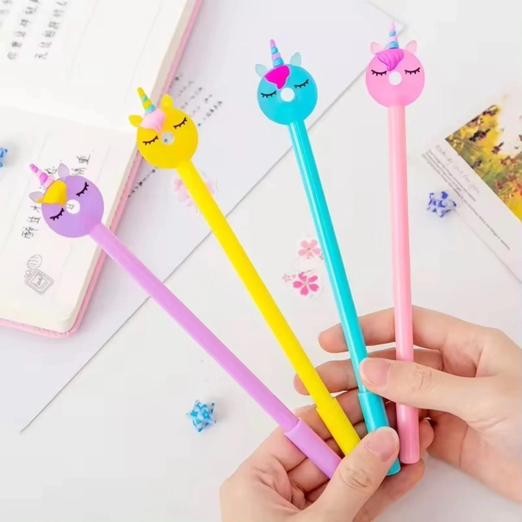 A Caneta Gel Donuts Unicórnio combina tinta preta vívida, traço fino de 0.5mm e um corpo super colorido com topo em silicone no formato de donut-unicórnio — perfeita para quem ama papelaria fofa com escrita leve e fluida.