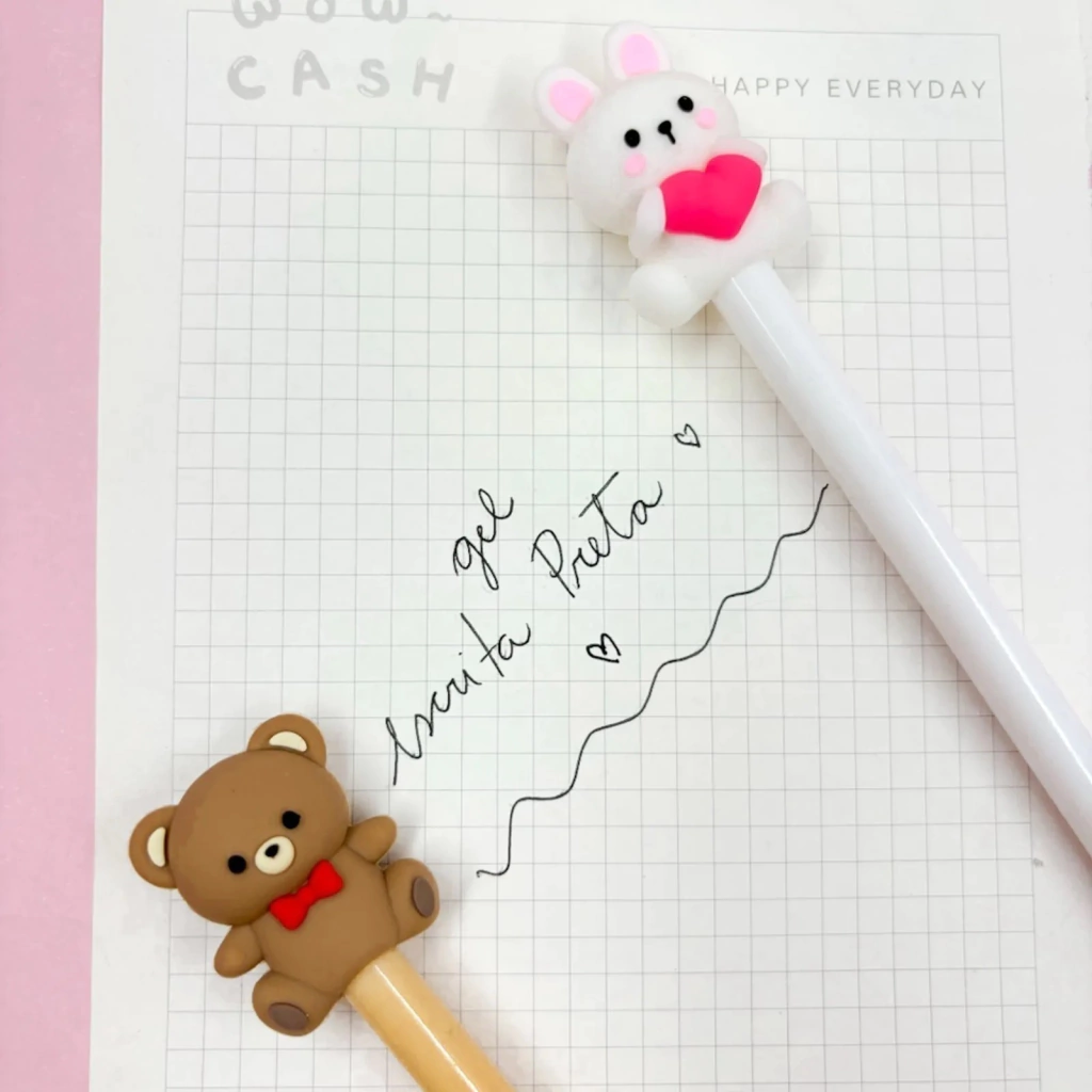 Essas Canetas são super fofinhas. Sua ponta fininha de 0.5mm garante firmeza na pegada. Possui escrita contínua e macia na cor preta e tinta em gel. Essa Caneta Fofa foi pensada para trazer um toque lúdico e divertido para o dia a dia.