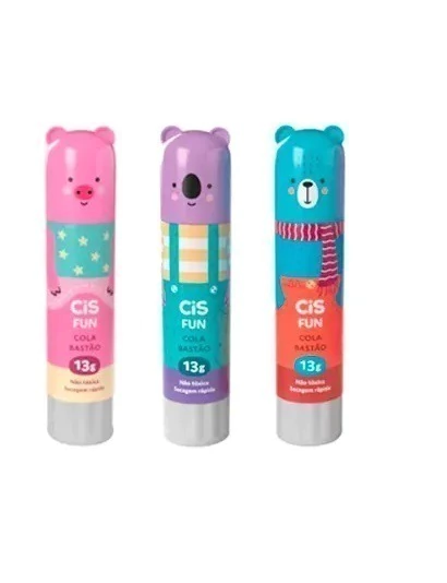A cola bastão Fun da Cis é um produto incrível para quem busca praticidade e qualidade em seus trabalhos. Com 13g, sua fórmula não tóxica e secagem rápida, essa cola é perfeita para uso em papéis, cartões, fotos e envelopes. Além disso, a cola bastão Fun 13g está disponível em um modelo muito mais fofo e inovador, com 3 opções de estampas de animais muito lindas e fofas para serem os seus companheiros e deixar o seu dia-a-dia mais divertido!