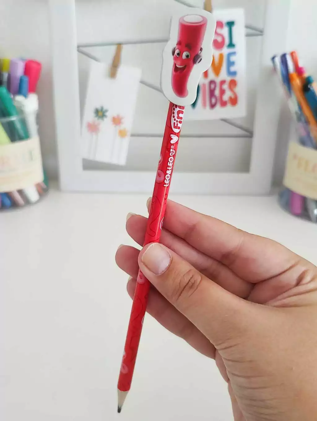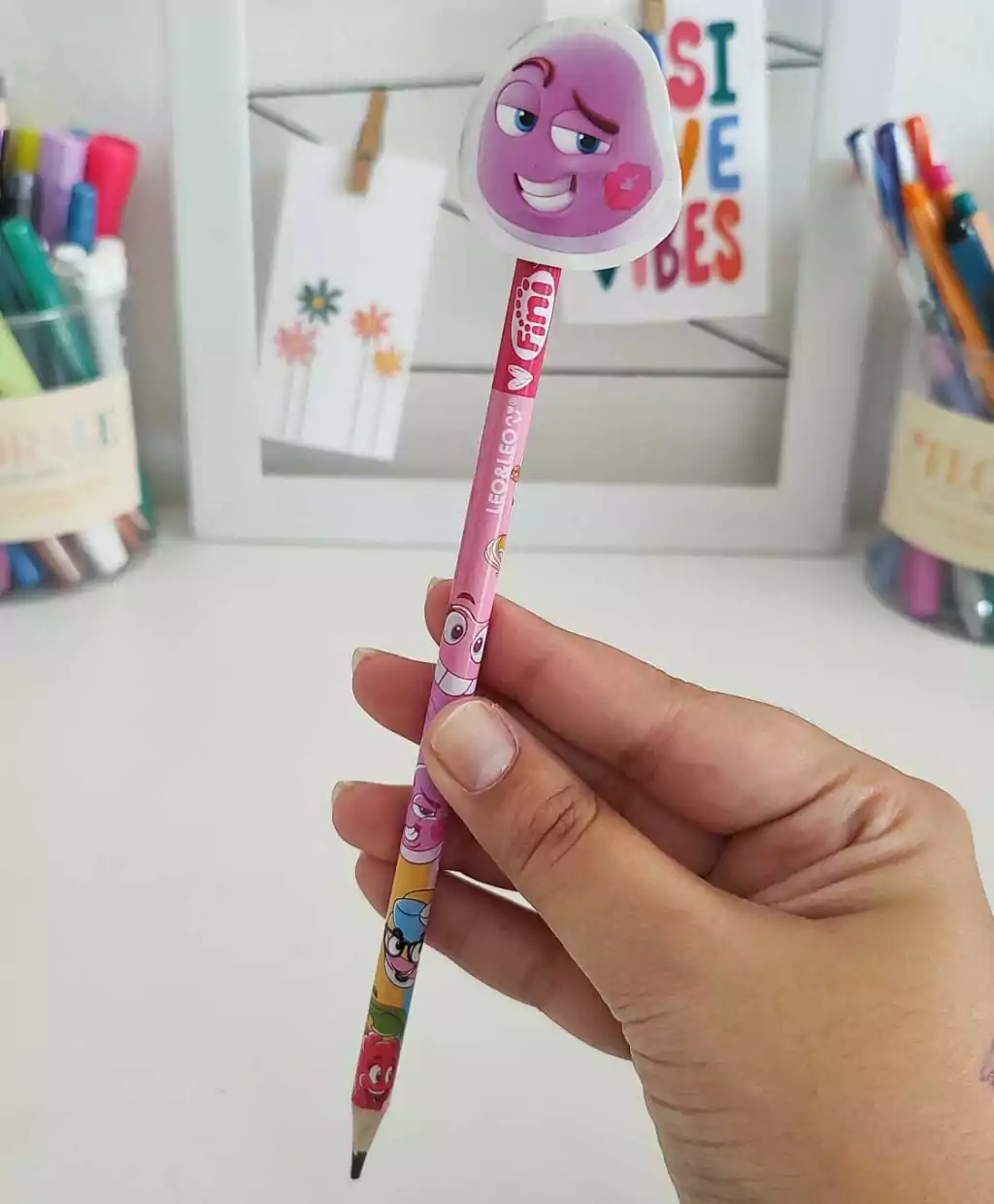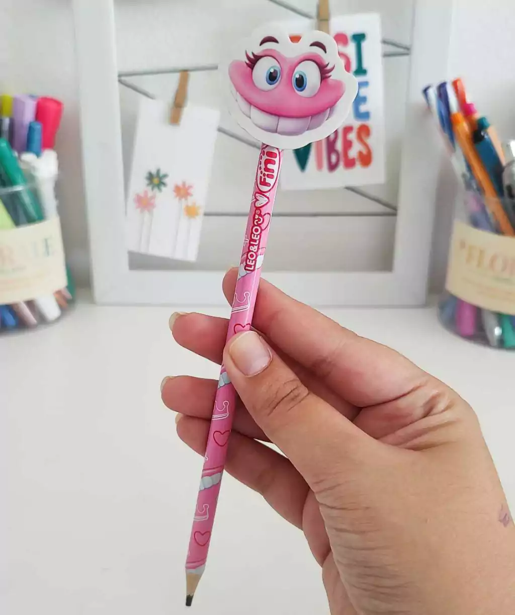 O Lápis HB Fini é ideal para transformar os momentos de estudo e criatividade em experiências mais leves e divertidas. Com formato redondo, traço macio e firme, ele é fácil de apontar e vem com borracha embutida que apaga superbem — tudo com o charme das estampas inspiradas no universo Fini!