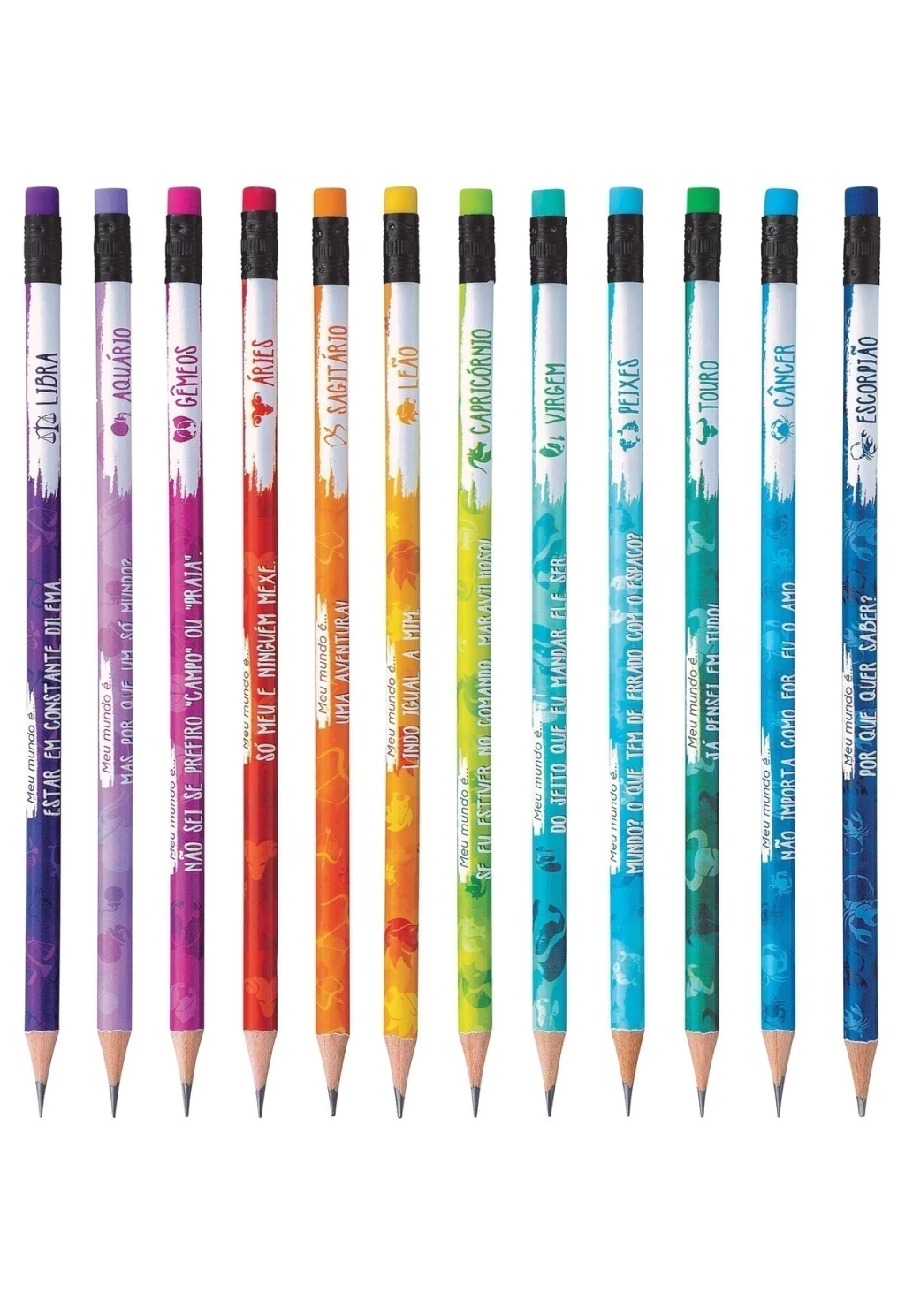 Para amantes de signos e lápis bem coloridinhos, conheça o Lápis de Signos da Tris! Esse modelo é um lápis colorido em degradê super estilosa do seu signo favorito! Seu material é feito de uma madeira resistente, com grafite HB e escrita bem macia. Além do seu fácil manuseio, ele vem em cores exclusivas para cada signo!