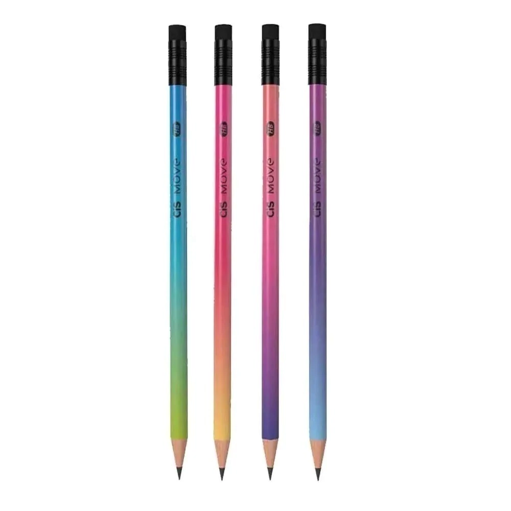 Mais cor até nas tarefas mais simples! O Lápis Preto HB Move da CIS traz um toque de estilo ao seu estojo com seu corpo arredondado em degradê colorido e borracha no topo, unindo praticidade e design em um só produto.