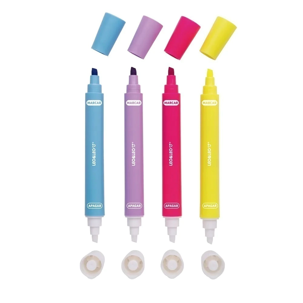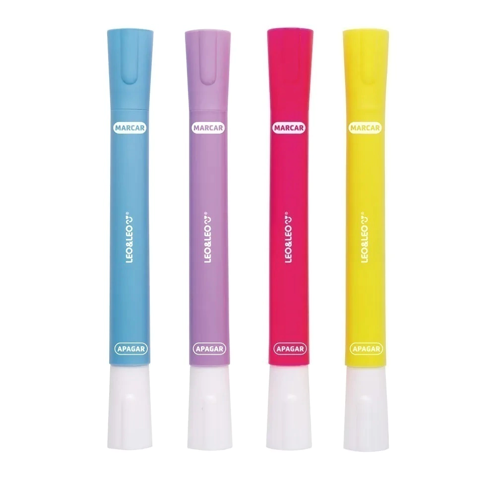 Esse Marca-Texto Apagável vem com duas pontas funcionais: uma chanfrada para marcar e outra apagadora, ideal para quem busca flexibilidade na organização de anotações. A ponta marcadora vibrante permite traços de 1 a 3,5mm, enquanto o corpo redondo oferece pegada firme e confortável.