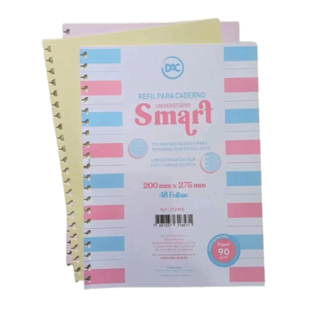 Refil de folhas destacáveis para caderno SMART DAC é ideal para você organizar tudo do seu jeito. Com folhas em linhas brancas que ajudam na hora da escrita.