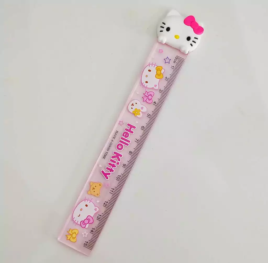 A Régua My Melody é perfeita para quem ama papelaria fofa e funcional. Com 15cm de comprimento, ela possui corpo transparente decorado com ilustrações da My Melody e sua turma Sanrio, além de um detalhe em alto-relevo da cabecinha do personagem na ponta, que deixa tudo mais divertido.